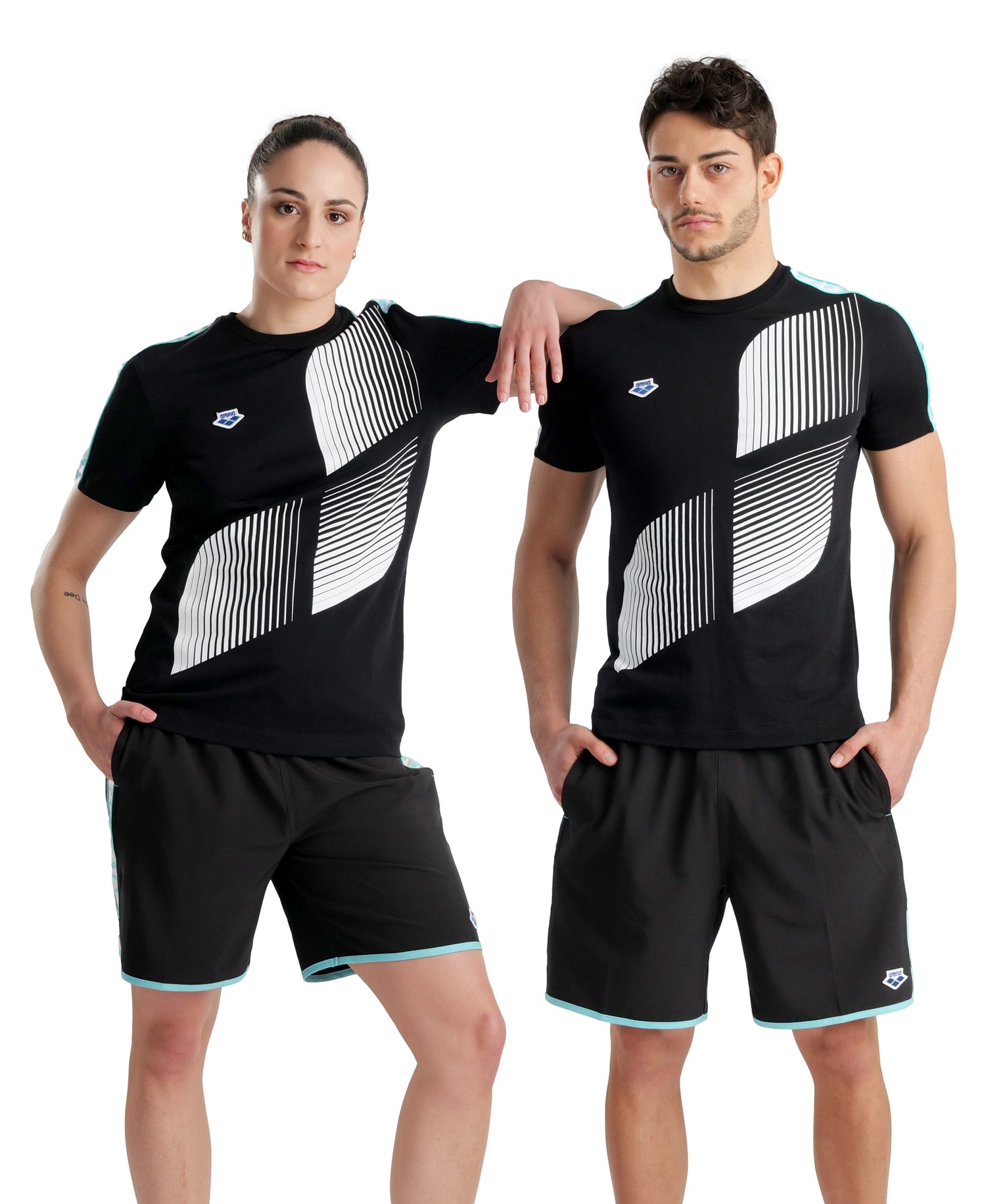 Sleek and sporty, the arena Diamonds Logo T-Shirt for men and women is ideal for casual wear and athletic training. Part of the exclusive arena Diamonds collection dedicated to the resilience of us all, that like diamonds we shine brighter when we are together, this athleisure item is a classic tee in black cotton jersey with a special redesign of arena's three-diamond logo. The team stripes on the short sleeves and the vintage patch add a touch of retro flair to this top.