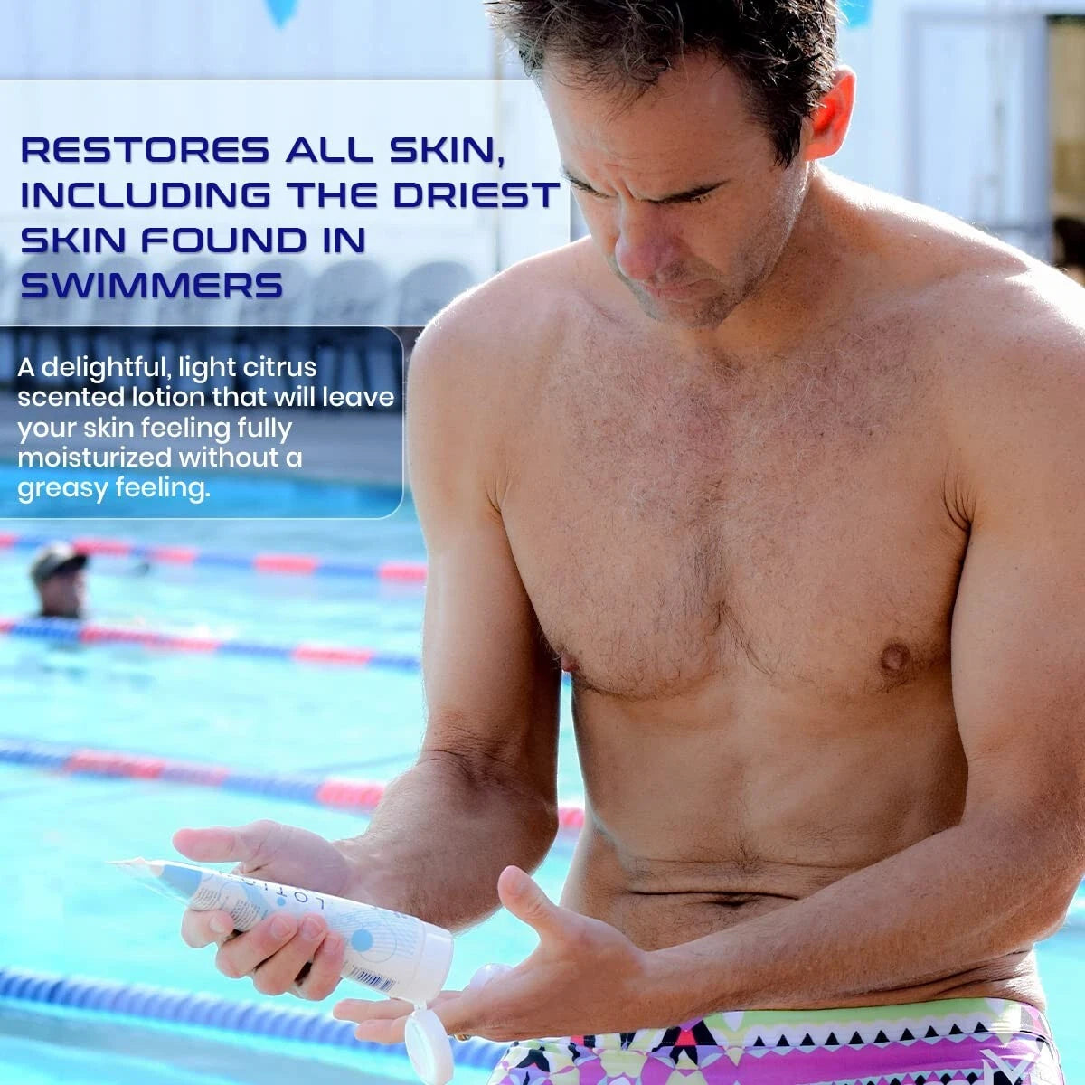 Formulated for the driest of dry skin found on swimmers, TRISWIM Lotion effectively reconditions the skin with Aloe Vera, Vitamin E and ProVitamin B5 and combats harsh chemicals, salt water & sun endured by surf seekers and lane legends alike. TRISWIM Lotion helps soothe, repair, and restore dry, itchy, sunburned skin, reducing peeling and protecting the skin from environmental elements with a deliciously soft citrus grapefruit scent.