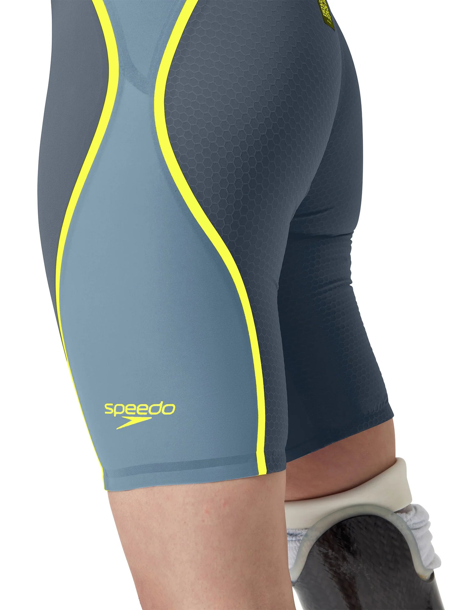 Speedo Women's Fastskin LZR Pure Intent 2.0 Openback Racing Kneeskin - Grey Lead/Acadia Blue/Hyper Yellow