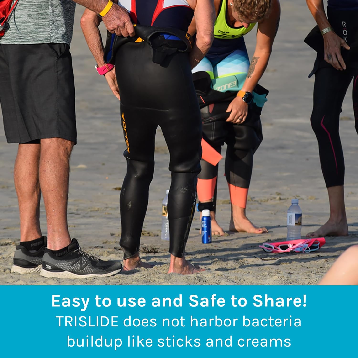 For triathletes, surfers and divers, TRISLIDE is completely safe to use on all neoprene compared to petroleum or vegetable based products that will disintegrate the wetsuits. TRISLIDE is a liquid silicone based product that will not stain most clothes, can simply be removed with the combination of stain remover, soap and water. TRISLIDE is the most innovative product to prevent chafing, blistering, irritation, and hot spots found in swimming, biking, running and everyday activities.