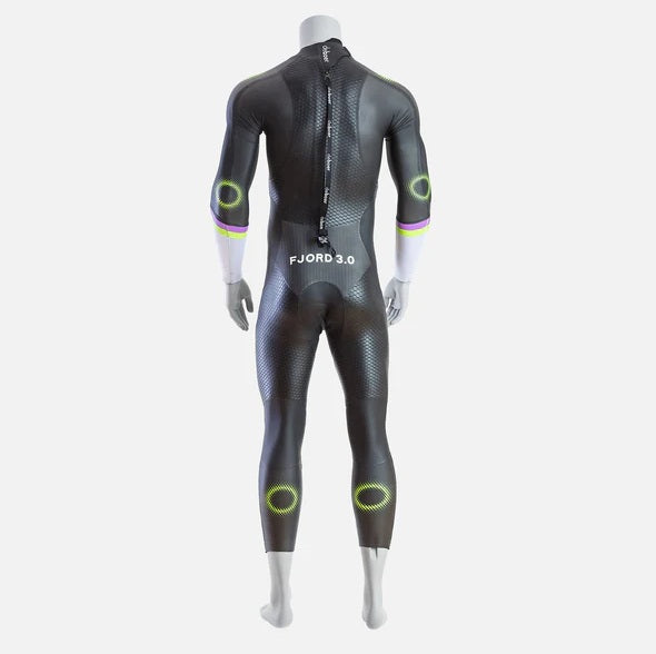 the FJORD 3.0 is the new pinnacle in wetsuit innovation & performance. the FJORD 3.0 integrates 2 years of research, development and testing to create a wetsuit that is faster than ever. our proprietary X-Skin neoprene helps to noticeably reduce hydrodynamic drag with its innovative scale array texture. redesigned sleeves maximize flexibility through the shoulder, while a purpose-designed Propulsion Forearm allows you to catch & pull more water than before.
